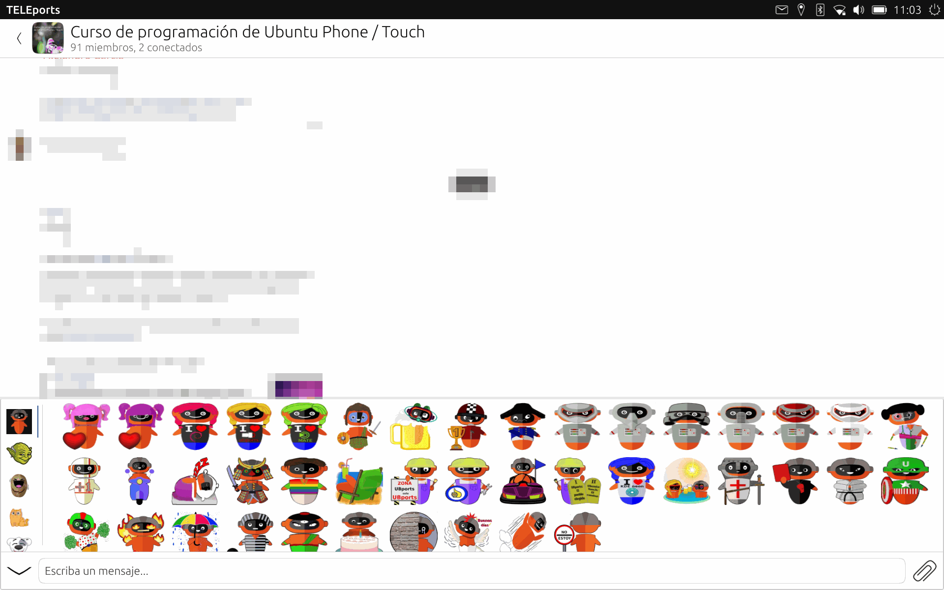 At the moment normal stickers can be used. Animated stickers do not yet work on TELEports. If you wanted to see those, you would have to use the Web version of Telegram. In TELEports you can use the stickers that you have associated with your Telegram account. All settings except storage settings sync between Ubuntu Touch, desktop, and Android/iOS.